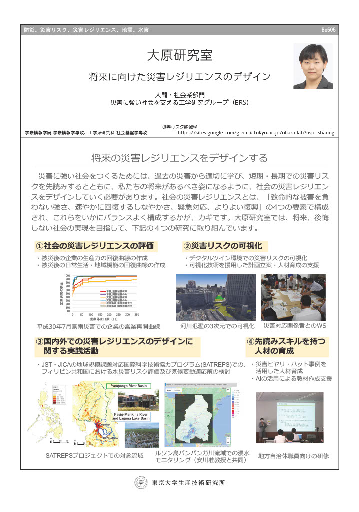 近年の災害の影響分析に基づく地域社会の災害レジリエンスに関する研究成果を展示します。
